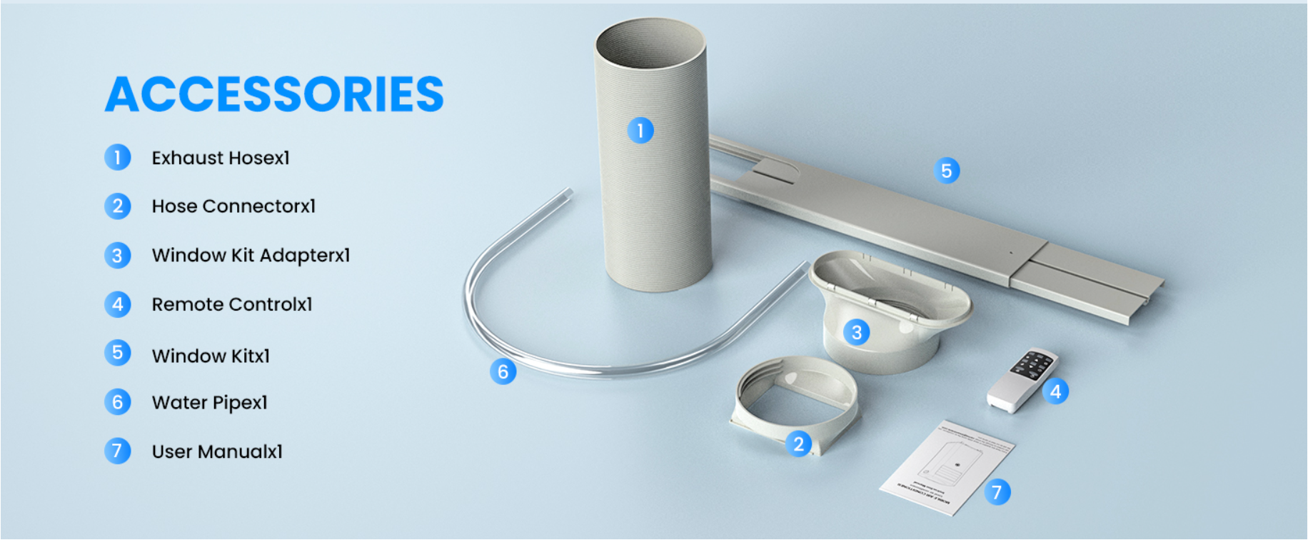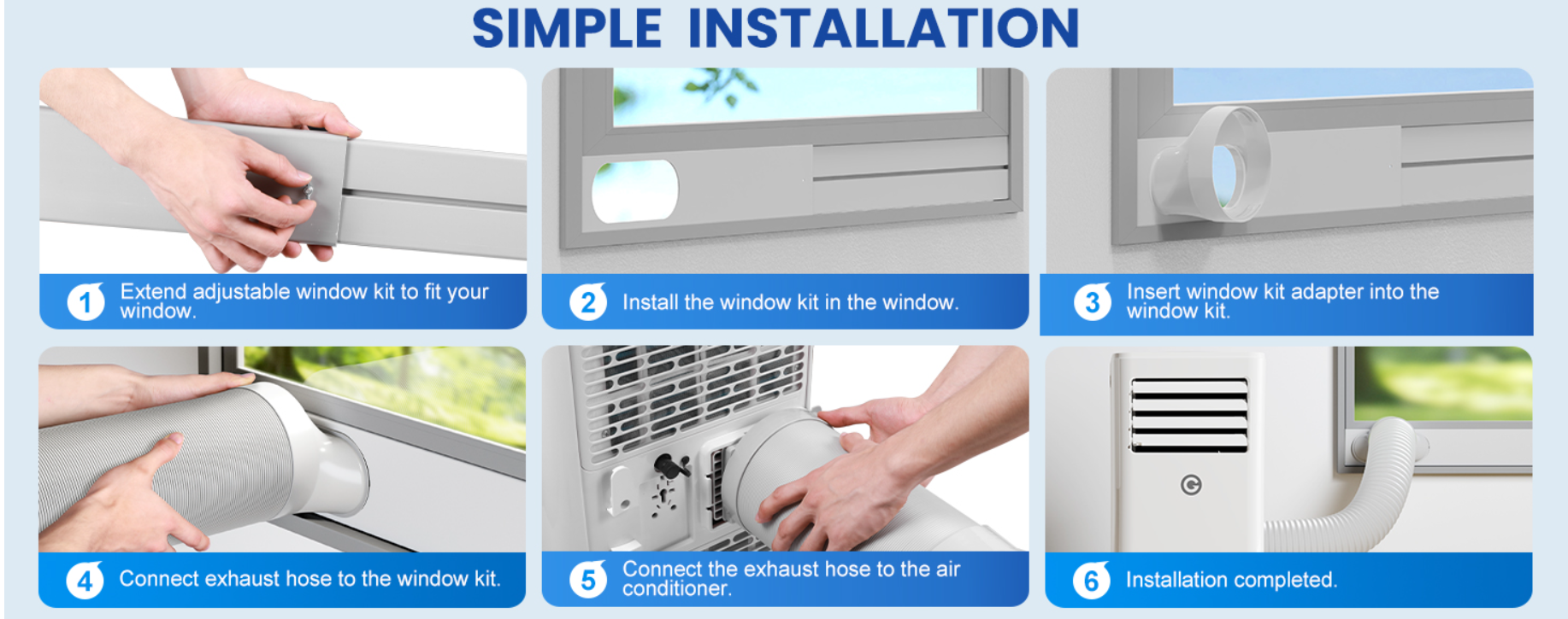 Air Conditioning Unit Portable Air Conditioner 9000 BTU 4-in-1 Dehumidifier, Cooling Fan with 2 Speeds, Digital Display & Remote Control, Window Kit