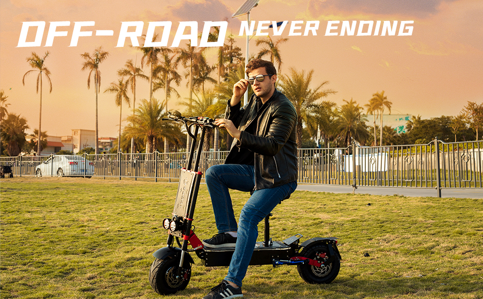 This electric scooter is made of reinforced aluminum alloy all over the body for sturdy performance, excellent acceleration and great power. Our electric scooter uses 13-inch vacuum tires and dual motors with a total power of 8000W, making it the best choice for you no matter what kind of usage scenario.