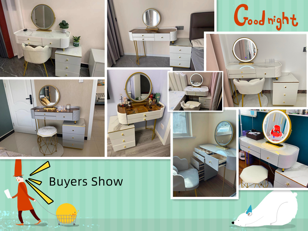 2. The desktop design of piano paint and the large capacity of multiple drawers can meet all your needs. The table top can hold various items. This dressing table even becomes your home decoration with its classic appearance.