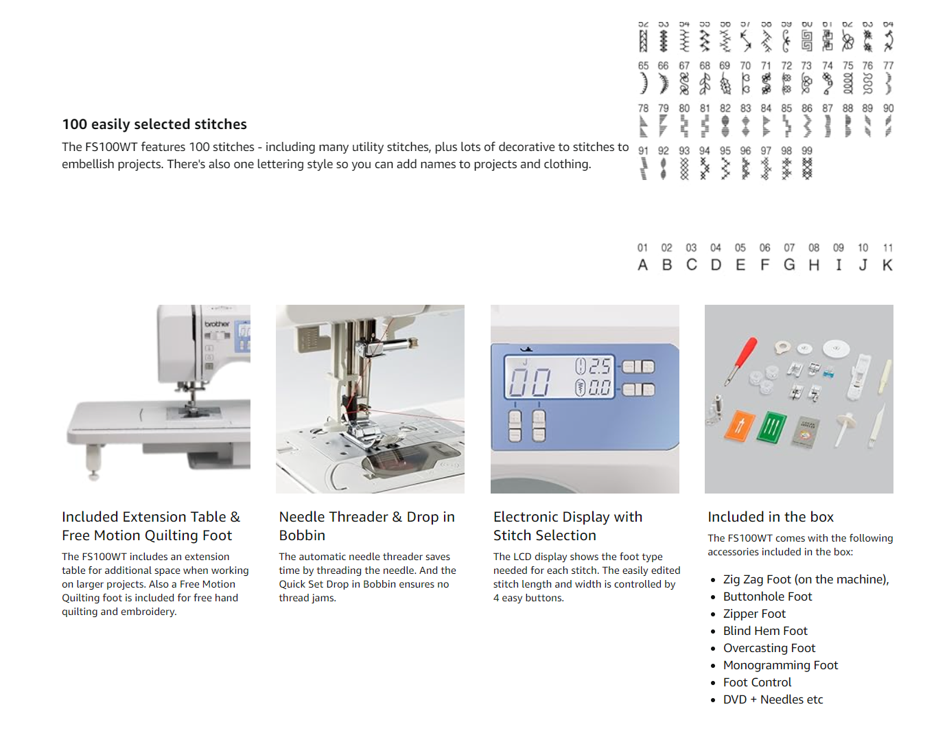 - 100 Stitch Electronic Sewing Machine with Needle Threader and 1 lettering style